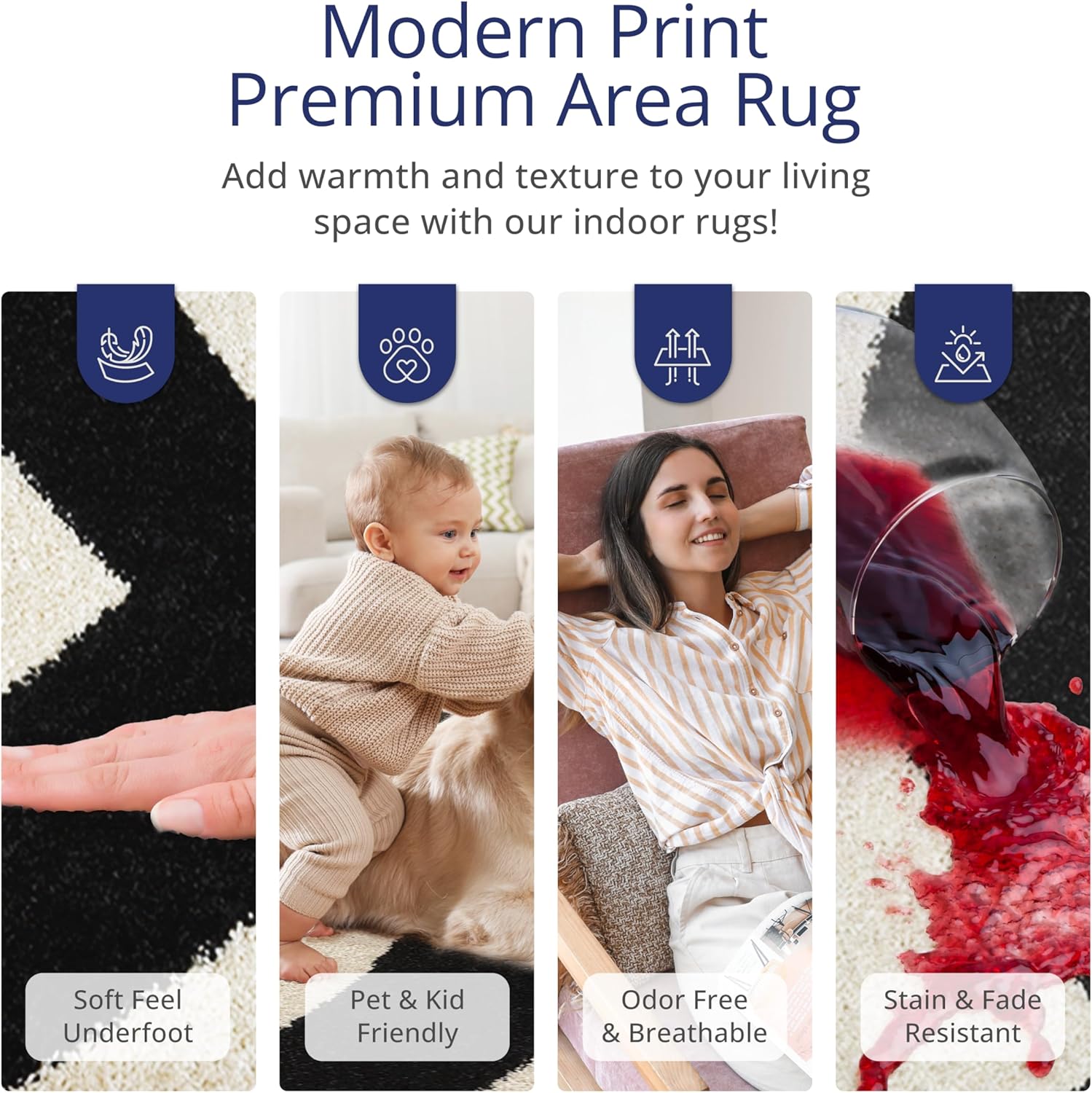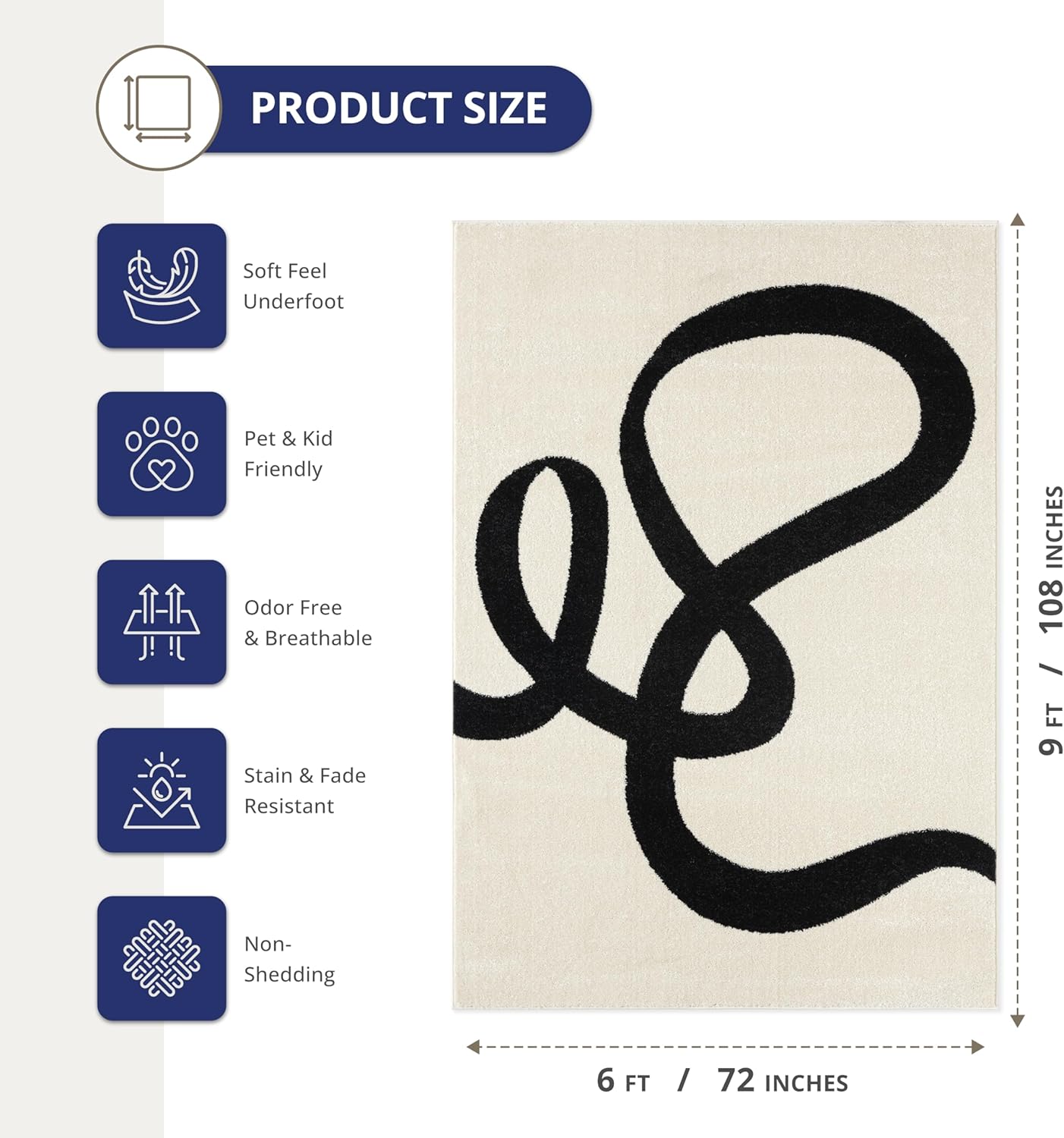 Abani Abstract Beige/Black Area Rug - 6'x9' - Modern Curved Line Design - Deco Collection - Easy to Clean - Durable for High Traffic Areas - Bedroom, Office & Kitchen - Medium Pile