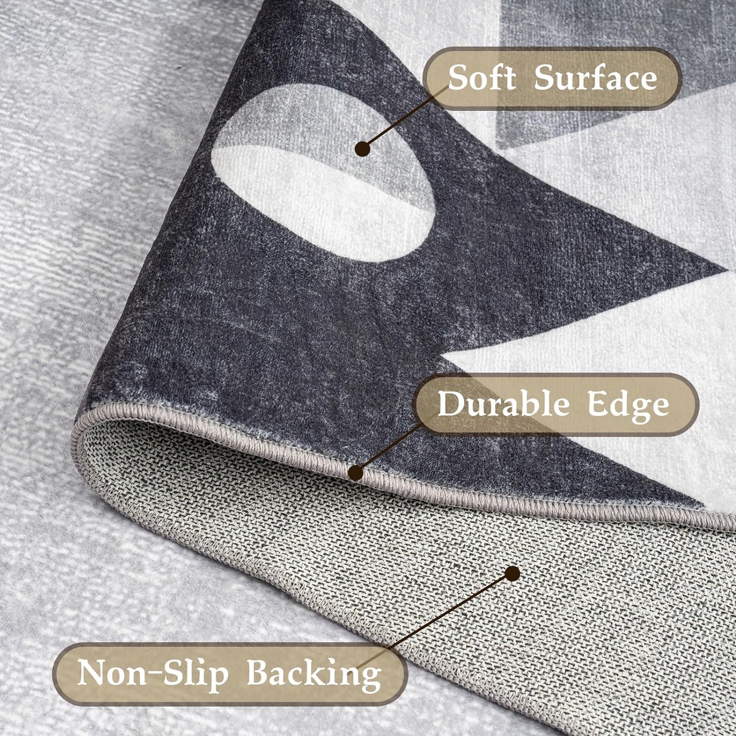 HOMFINE Washable Modern Area Rug - Geometric Style 5x7 Rugs for Living Room, Bedroom, Machine Washable Rug Soft Non Slip Non Shedding Area Rug - Grey, 5'x7'