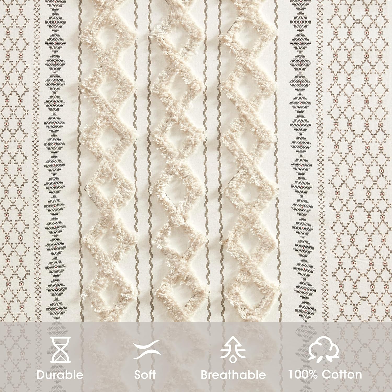 The INK+IVY Imani Cotton Printed Window Panel with Chenille Stripe and Lining offers a chic and casual update to your home. This ivory window panel features a geometric print with a tufted chenille stripe trim, for a textured artisanal look and feel. A lightweight white cotton lining on the reverse softly filters light, while providing better drapability and added privacy. In addtition, this 100% cotton curtain panel is also OEKO-TEX certified for superior COMFORT and WELLNESS, as they are free from any substances or chemicals that may compromise quality. Each panel is finished with a rod pocket top for easy hanging, and back tabs for a more clean and tailored finish. This window panel is sold as a single and 2 window panels must be purchased to cover any standard size window. Complete the look with coordinating bedding sets and bath decor, available and sold separately.