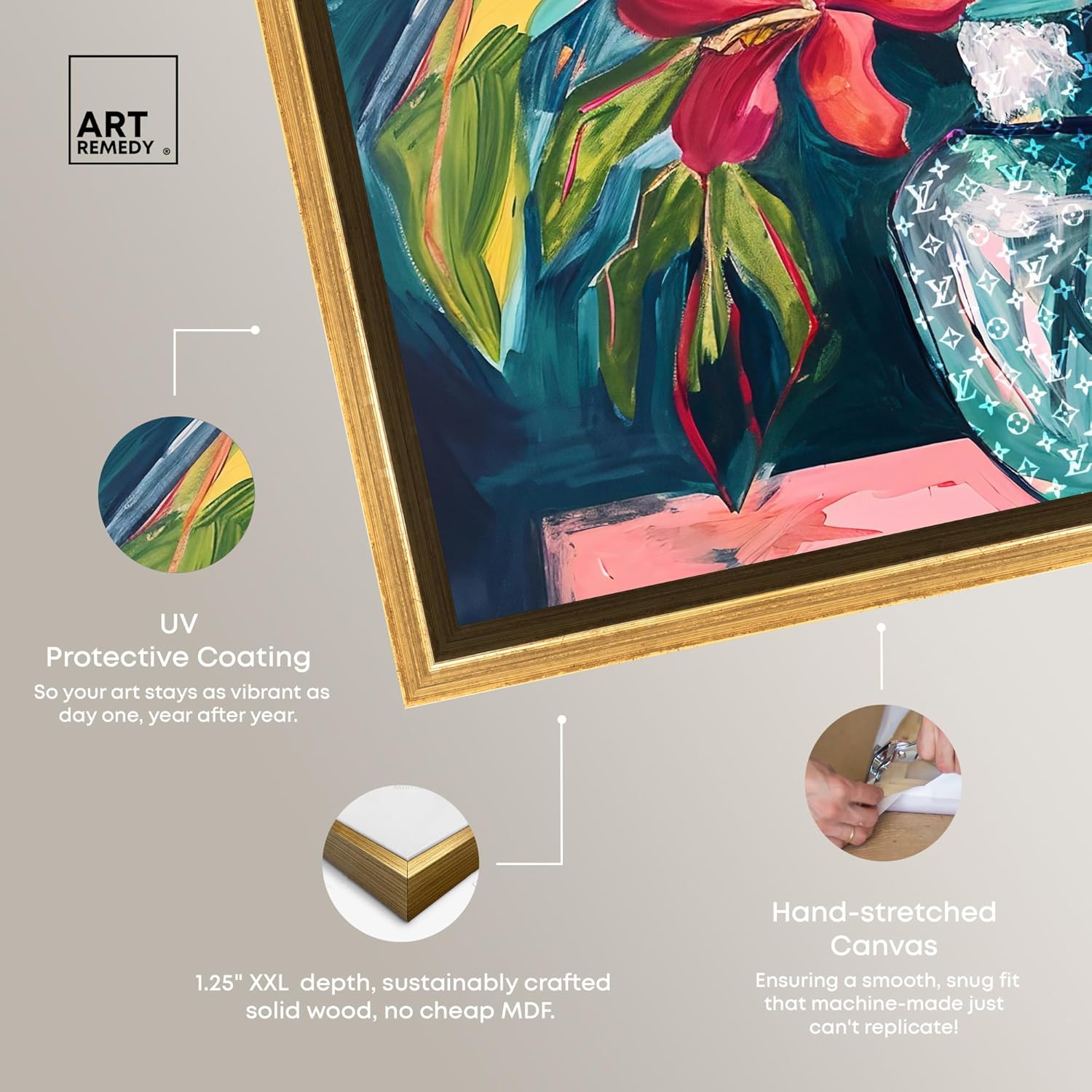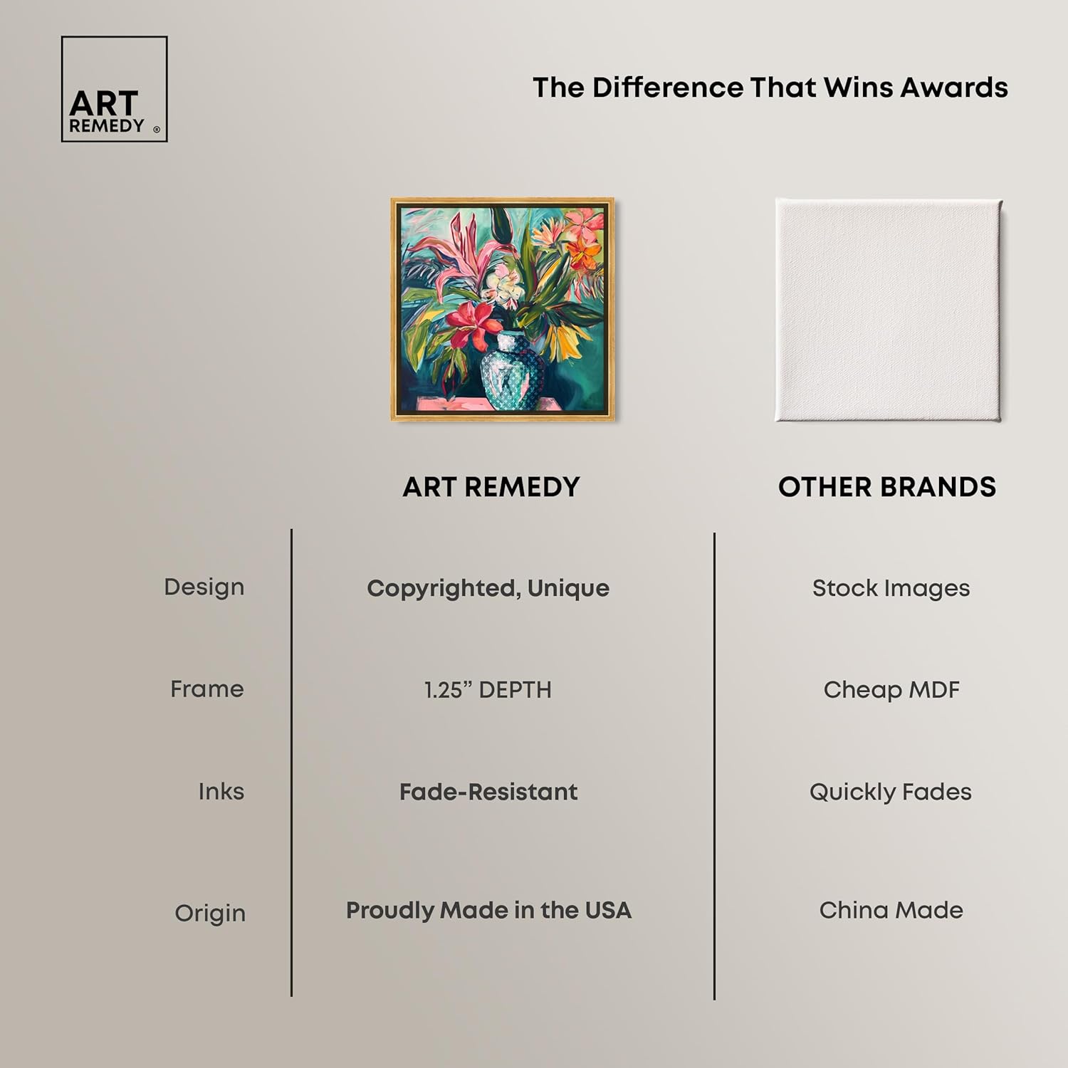 Presented in a chic modern frame, this distinctive contemporary artwork from Art Remedy is a perfect addition to your home decor collection. Handcrafted in the USA by Artisans, this floating canvas art is bound to be a conversation starter and a daily pleasure in your living room, bedroom, or any space in your home. Choose from a range of decorative floater frames including black, white, and gold to suit your style. Printed on gallery-wrapped canvas and encased in a wooden frame, this timeless wall art arrives ready to hang with a nail and hook included. Art Remedy, a women-owned and award-winning design house, specializes in creating and curating collections of one-of-a-kind artwork and giclees to captivate the most discerning taste.