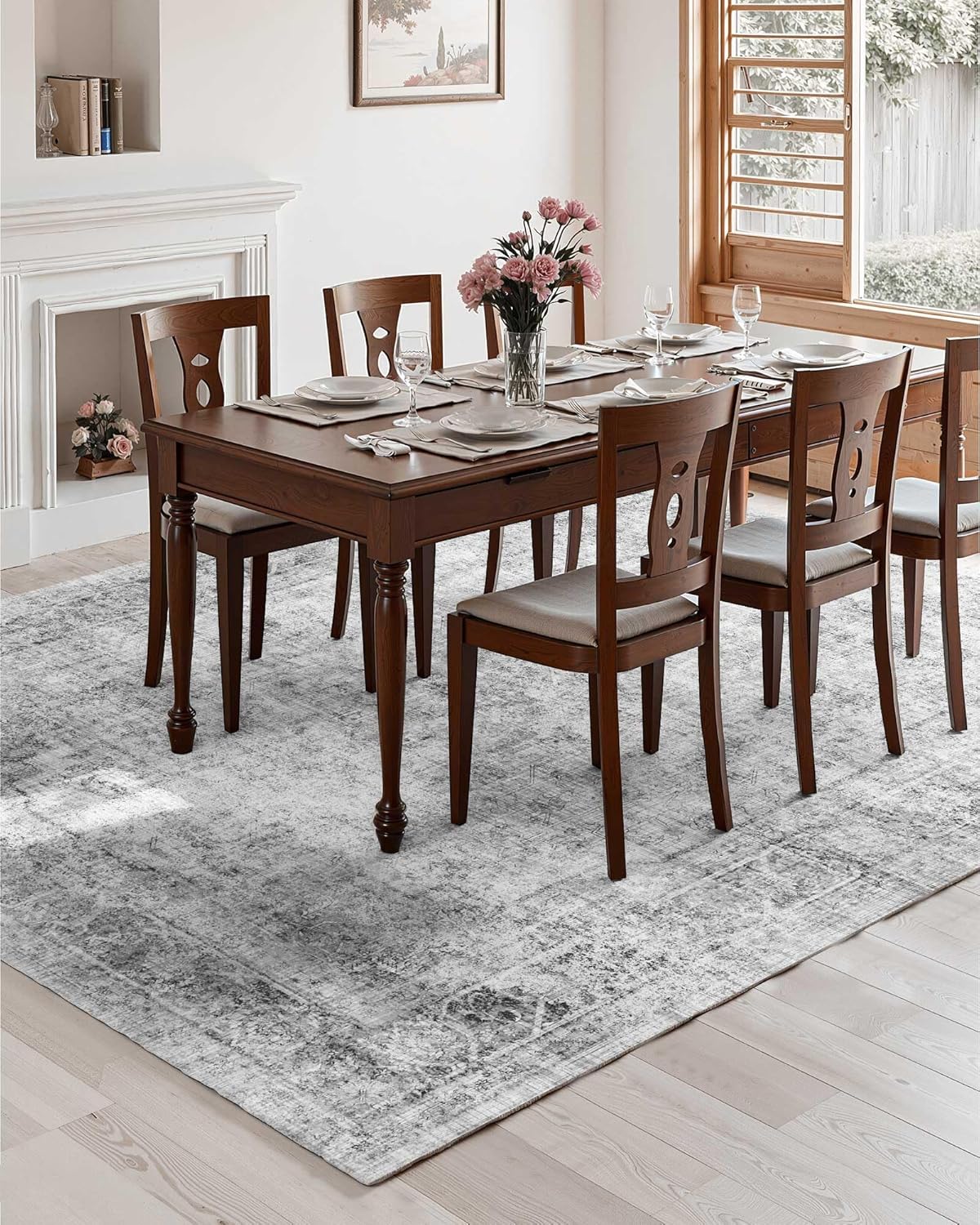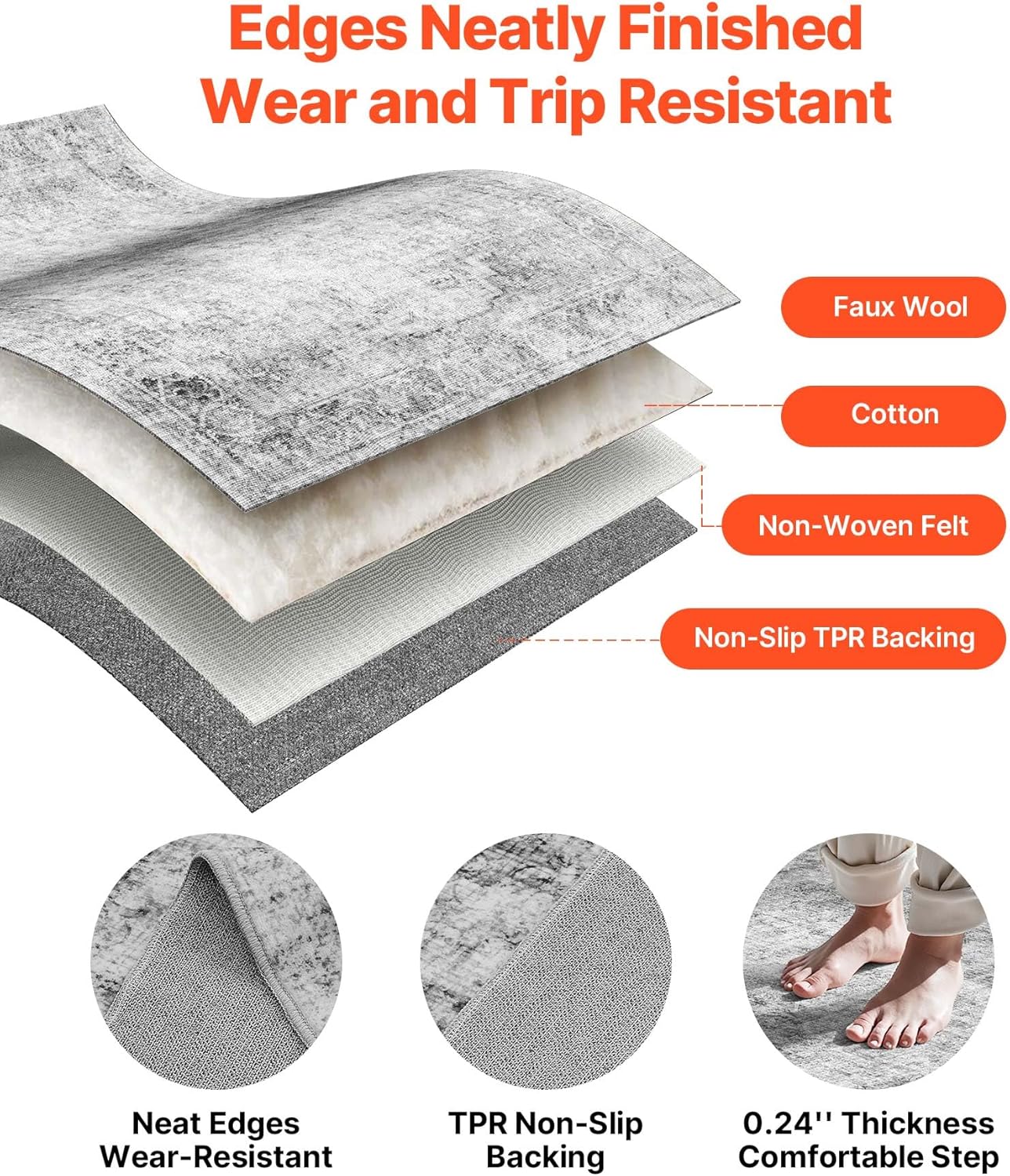 VEVOR 9 x 12 ft Area Rug Large Washable Boho Rug Non-Slip and Tear-Resistant Soft Carpet Pet & Child Friendly Bohemian Area Rugs Indoor Mat for Bedroom Living Room Kids Room Office Gray
