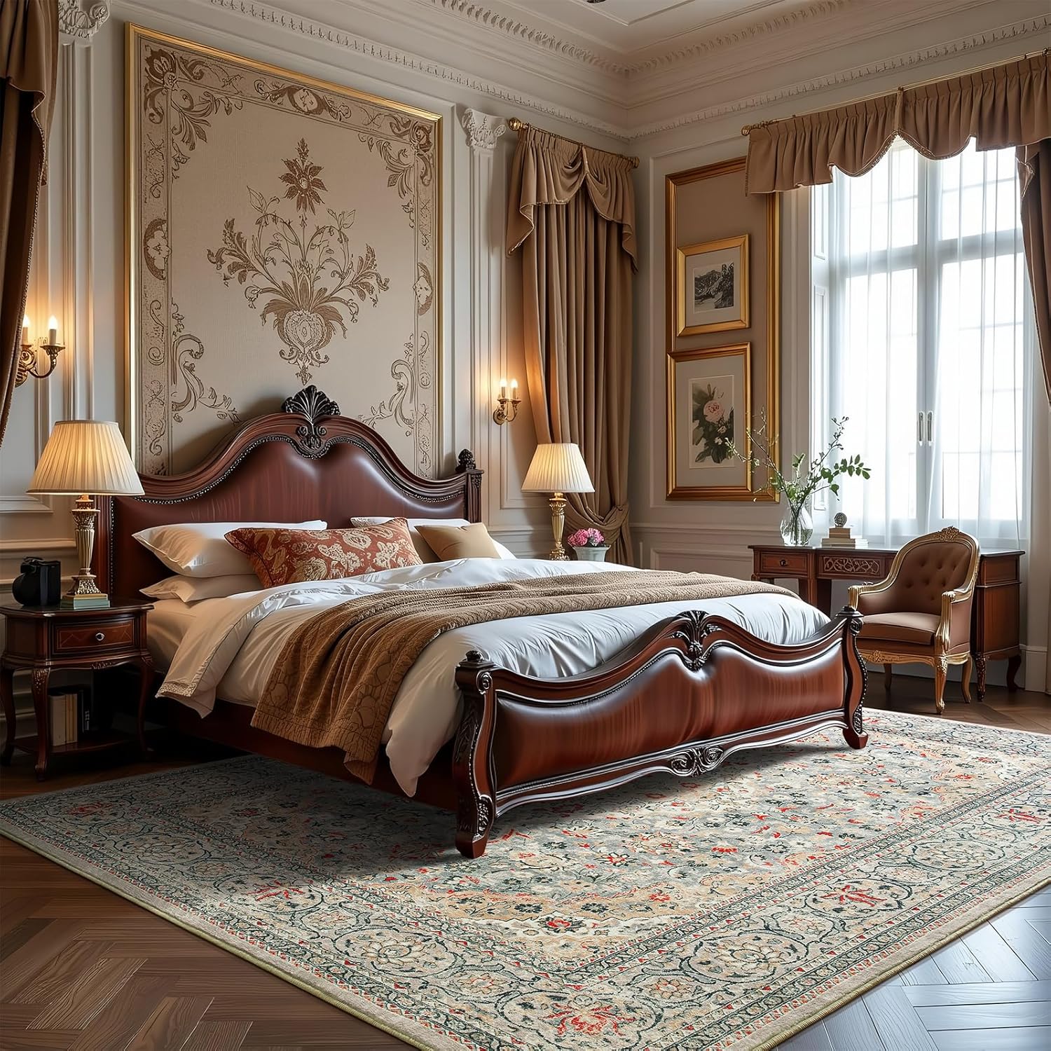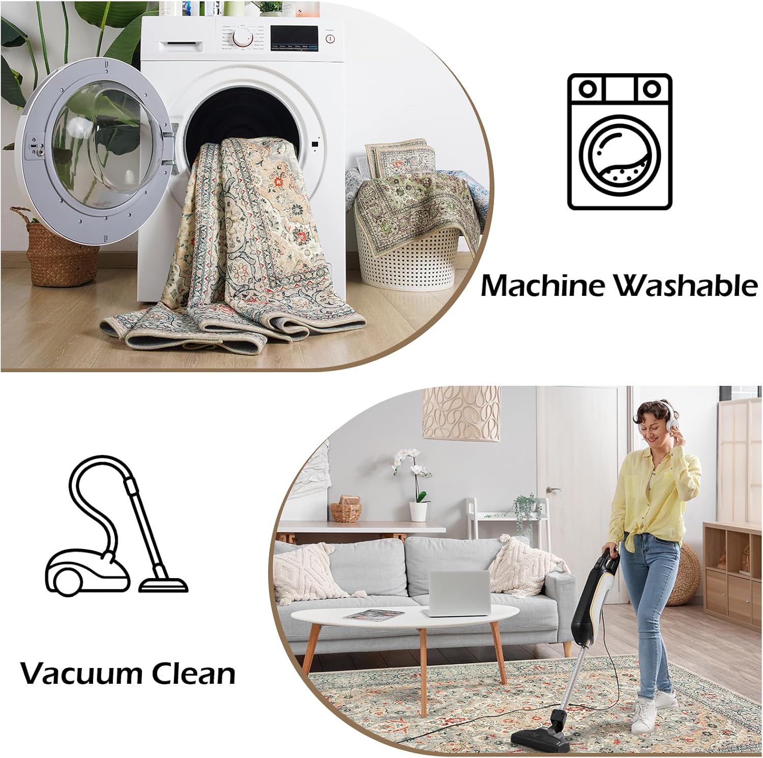 Washable Rug 4x6, Beige Area Rugs Non Slip, Indoor Low Pile Carpet with Rubber Backing for Living Room Kitchen Bathroom Entryway Office Bedroom