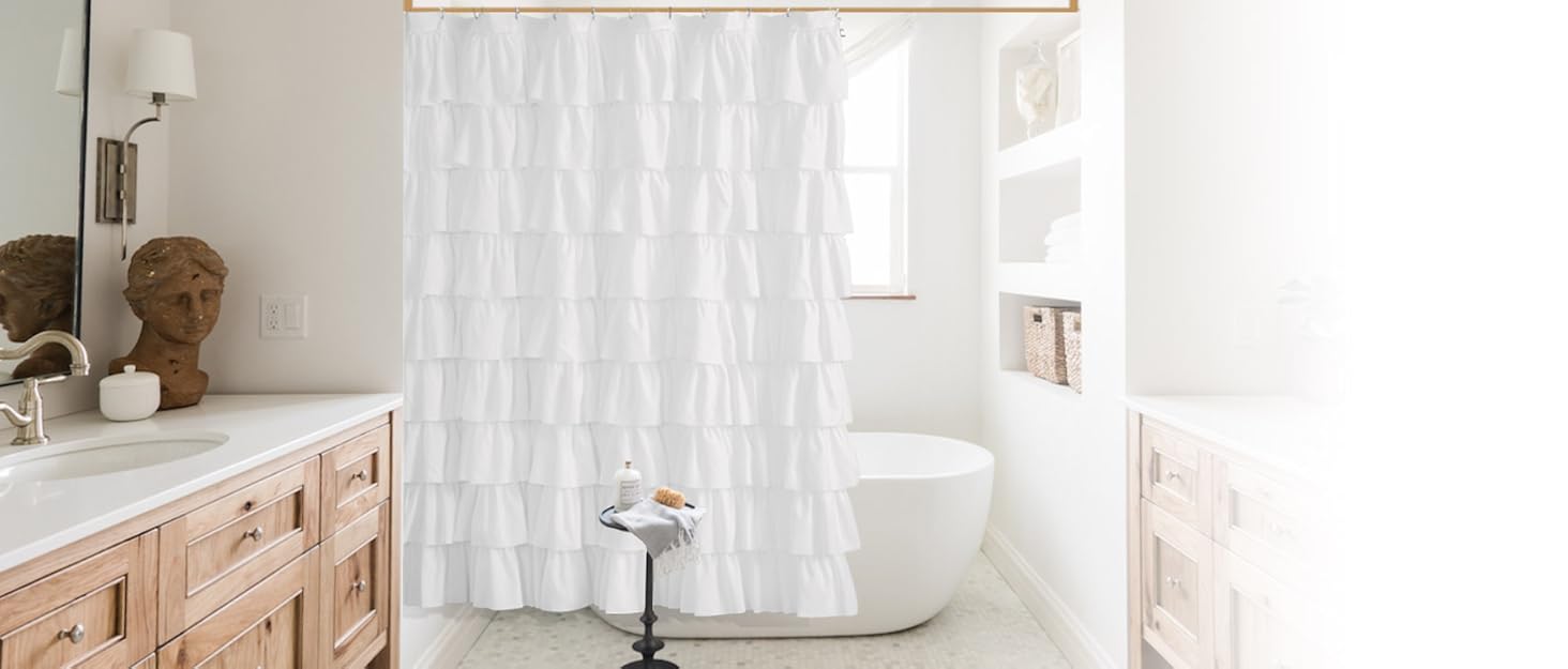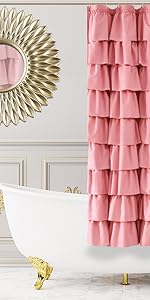 - so our fabulously long ruffled style shower curtain adds chic texture to this captivating