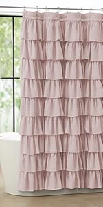 The graceful smocking ruffles in the westweir collection,pretty,romantic.so very farmhouse chic! Let’s love the delicate feminity and sweetness these panels brings to the bathroom.the antique white fabric is woven in soft and supple.and drapes wonderfully.an elegant ruffle is layered on top of the base fabric at the bottom of the curtain,adding fullness and a charming fulounce to the curtain.as a shower curtain,it dry quickly and prevents water from splashing onto the floor to keep it dry.the design was inspired by a waterfall.