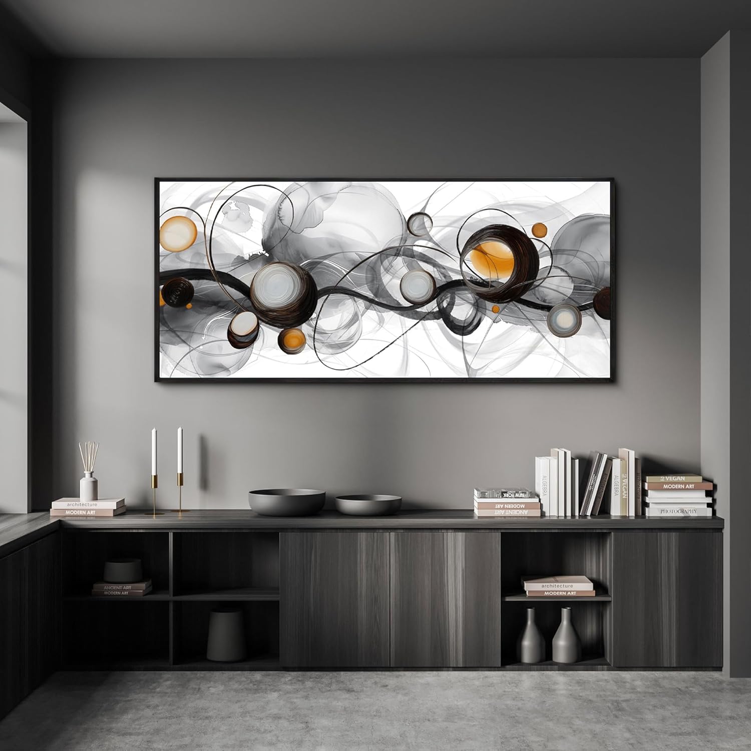 XLSJERST Large Size Frame Wall Art for Living Room - Abstract Artwork Minimalist Painting Modern Black and White Canvas Picture Boho Gray Wall Art