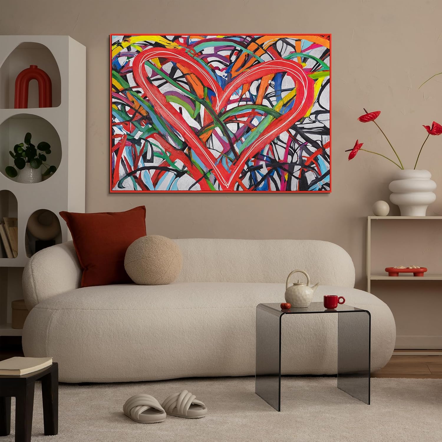 YS-Art Framed Acrylic Glow in The Dark Art Dance of The Hearts Night Light Abstract Modern Artwork Luminous Wall Decor 55x40 inch